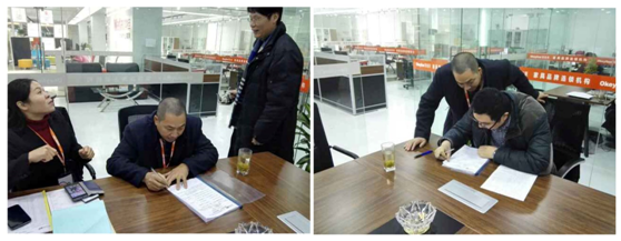 ▲蠡口匯海隆迪歐顧經理與黃廠分別在反饋表上簽字確認